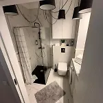 Das Apartment verfügt über ein Badezimmer mit einem Haartrockner und Badelaken. Außerdem gibt es eine getrennte Toilette und eine Dusche usw.
